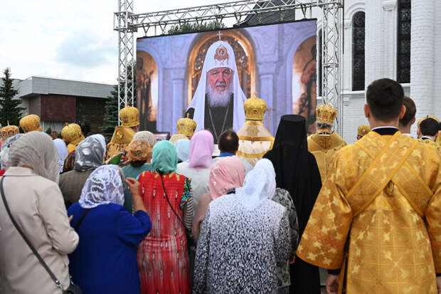 Патриарх Кирилл назвал "глубокую православную веру" условием принадлежности к русскому народу. Он подчеркнул, что имеет в виду не только россиян, но и "украинцев и белорусов", назвал настоящее время "судьбоносным", сравнил конфликт на Украине с Великой Отечественной войной, а также призвал "искать веру" и молиться "о властях и воинстве".