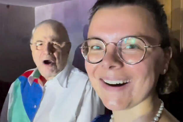 78-летний Евгений Петросян и 35-летняя Татьяна Брухунова стояли в концертном зале и подпевали Shaman, который исполнял гимн России. Юморист был запечатлен в белой рубашке с цветными полосами, а его супруга — в синем бархатном платье и жемчужном колье.