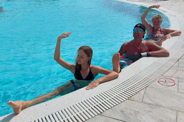 Фигурист Роман Костомаров с матерью и дочерью продемонстрировали растяжку. Они вместе позировали в бассейне, и спортсмен поделился снимком в личном блоге.
