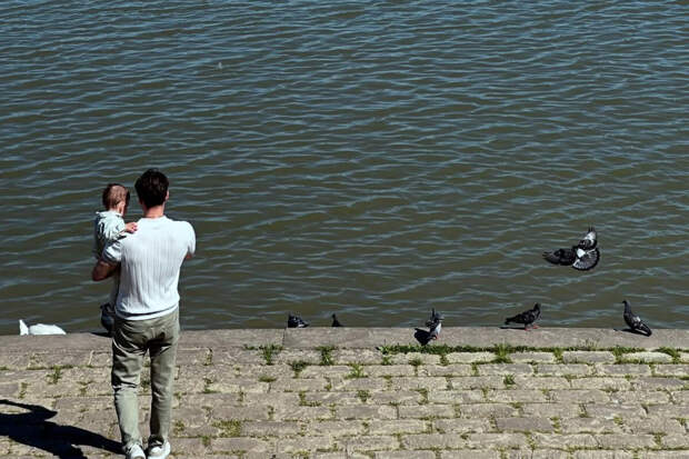 Милош Бикович был запечатлен вместе с ребенком во время прогулки. Актер держал сына в руках и стоял у водоема. Артист был одет в голубое поло, зеленые джинсы и кроссовки.