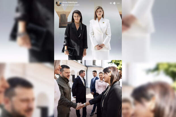 Жена премьер-министра Армении Никола Пашиняна Анна Акопян в своих социальных сетях поделилась фотографией со встречи с семьей Зеленских. В частности, на одном кадре она стоит вместе с Еленой Зеленской, на другом жмет руку президенту Украины. На фото обратил внимание Sputnik Армения.