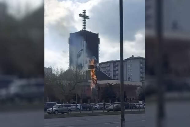 Издание пишет, что возгорание 25-метрового креста перед церковью св. Максимилиана Кольбе произошло накануне днем. Пожар заметил один из верующих. Пожарным удалось оперативно потушить возгорание, поэтому металлическая конструкция креста не пострадала.