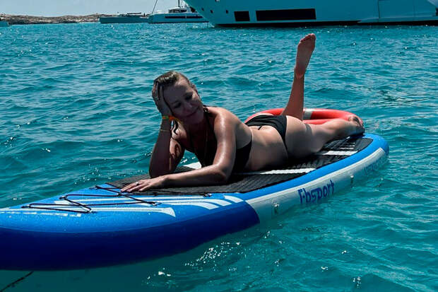 Телеведущая Ксения Собчак снялась в бикини на Ибице. Звезда позировала на доске для сап-серфинга и поделилась кадрами в соцсетях.