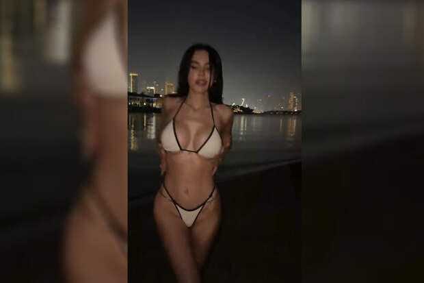 37-летняя Оксана Самойлова была запечатлена в белом крошечном бикини с черными лямками. Блогерша танцевала на фоне ночного Дубая.