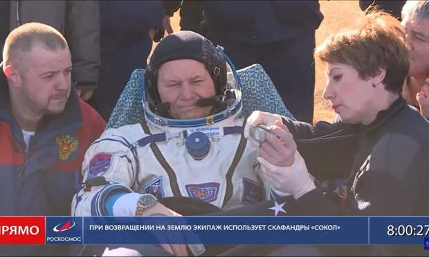 "Союз МС-25" с гражданкой Белоруссии отправился к МКС 23 марта. 6 апреля Василевская, Новицкий и астронавт NASA Лорал О'Хара приземлились в Казахстане на борту корабля "Союз МС-24". Посадка произошла к юго-востоку от города Жезказган.