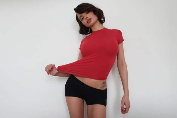 24-летняя Валя Карнавал стояла перед камерой в красном облегающем топе, который сочетала с черными микрошортами. Блогерша была запечатлена с уложенными в локоны волосами и макияжем с черными стрелками, тенями и матовой помадой.