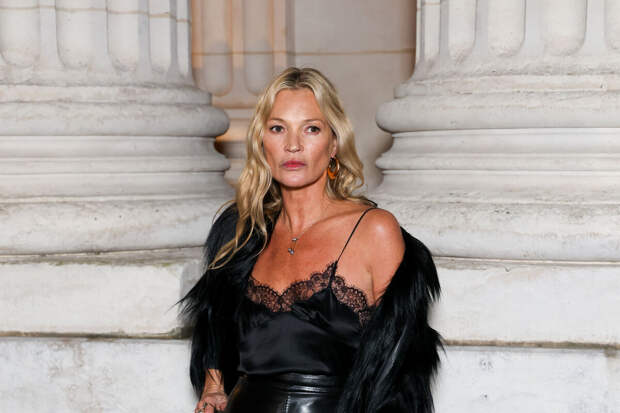 52-летняя Кейт Мосс посетила показ Saint Laurent, который состоялся в рамках Недели моды в Париже. Супермодель предстала перед фотографами в черном кружевном топе с декольте и кожаной юбке с разрезом.