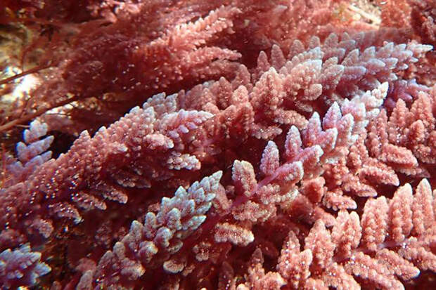 Некоторые красные водоросли, как выяснили исследователи из Университета Кобе, обладают необычными синими и белыми оттенками, которые не связаны с пигментами, а возникают за счет структурной окраски. Более того, эти цветовые участки совпадают с зонами, содержащими химические вещества, отпугивающие травоядных рыб, что впервые указывает на использование цвета в межвидовой коммуникации у водорослей.