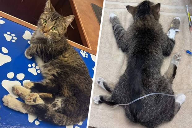Кот из Англии родился с шестью лапами из-за редкой аномалии, пишет Daily Mail.