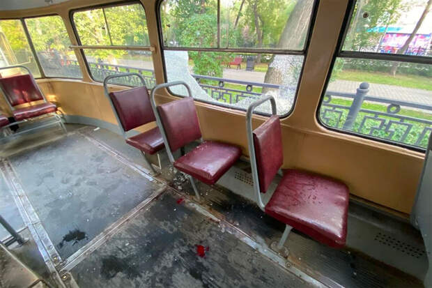 Два пассажира трамвая №13 устроили жестокую драку прямо в салоне транспортного средства. Один из мужчин разбил головой второго оконное стекло - его увезли на скорой. Вышедший победителем из схватки россиянин собрал сумки и вышел на остановке.