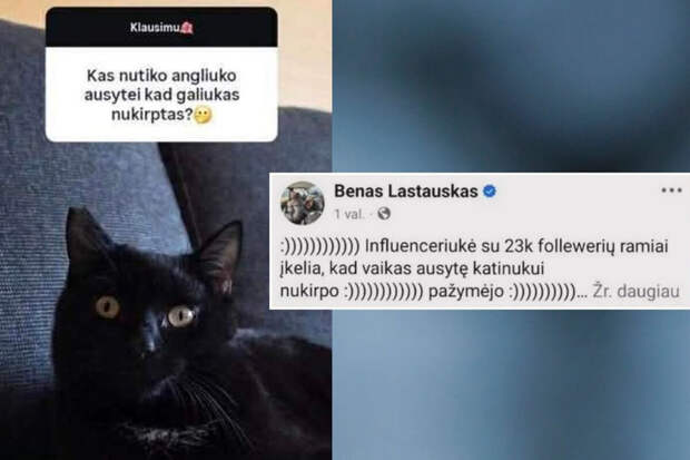 Как подчеркивает Telegram-канал, история началась с того, что литовский инфлюэнсер опубликовала в социальных сетях фотографию кота с поврежденным ухом.