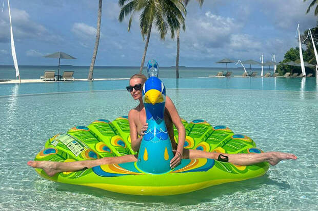 Балерина Анастасия Волочкова поделилась фотографиями своего фирменного шпагата. Сейчас звезда отдыхает на Мальдивах. На одном из снимков в Instagram звезда позирует в бикини на надувном матрасе в виде Жар-птицы.