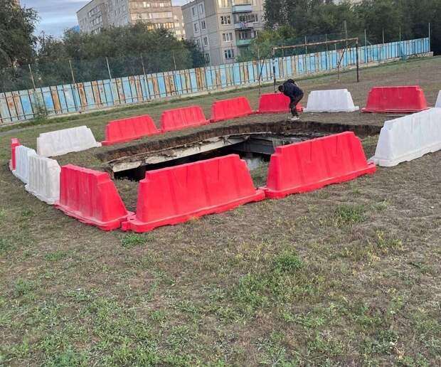 В Орске часть футбольного стадион провалилась под землю, оказавшись на автомобильной парковке. Об этом сообщает "Мутко Против".
