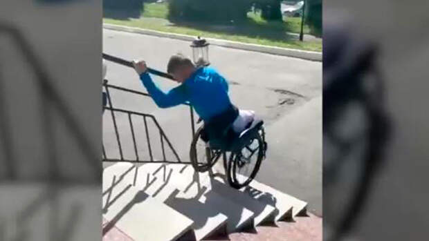 В прокуратуре отметили, что из видеозаписи следует , что пандус-скат, расположенный на лестнице, установлен под большим углом и фактически не приспособлен для самостоятельного подъема лиц с поражением опорно-двигательного аппарата.