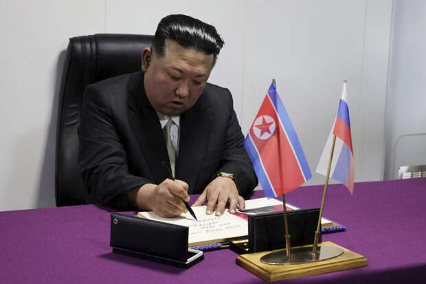 Северокорейский лидер подчеркнул, что российский народ "уверенно движется вперед по пути построения сильной и процветающей России, сокрушая все вызовы, санкции и давление враждебных сил, защищая суверенитет, безопасность и интересы страны".