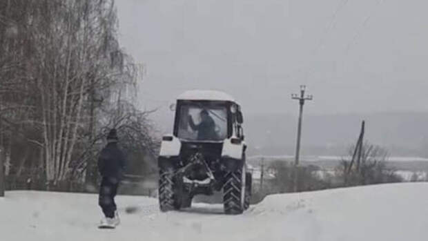 В Пензенской области мужчина прокатился на сноуборде, держась за привязанную к трактору веревку. Этот момент попал на видео, которое обнаружили в Сети сотрудники местной Госавтоинспекции.