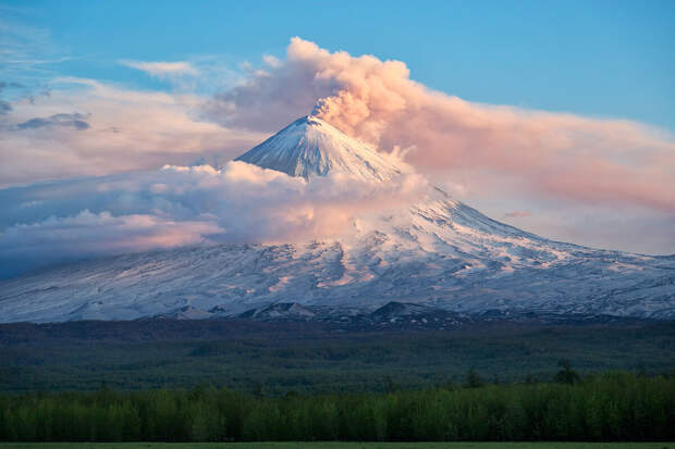 Ключевской вулкан самый высокий действующий в Евразии (4,8 тыс.