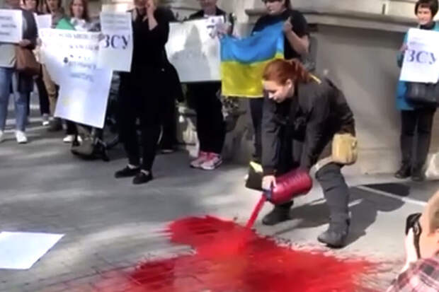 В Киеве красной краской облили здание городской администрации. Собравшиеся требовали прекратить тратить госсредства на "бессмысленные тендеры".