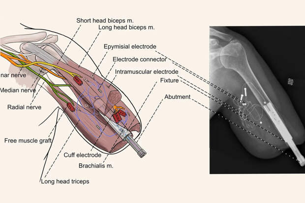 Поскольку пациенты могут сокращать мышцы по своему желанию, другой вариант — использовать оставшиеся мышцы культи для управления бионическими руками. Но это значительно труднее, если рука ампутирована выше локтя. Кроме того, прикрепление протезов может приводить к сдавливанию оставшейся конечности, что сопровождается дискомфортом и механической нестабильностью.В новом исследовании ученые использовали титановый имплантат для присоединения протеза. Сохранившиеся нервы они соединили с о специальными датчиками. Пациент, которому была проведена операция, смог контролировать каждый палец новой бионической руки, как если бы он был его собственным.