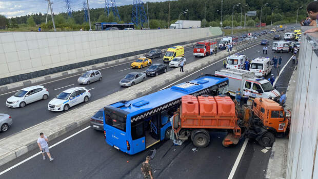 13 человек пострадали в результате ДТП с автобусом и грузовиком в Москве. Среди них три ребенка и беременная женщина, которая находится в тяжелом состоянии. Об этом сообщает ТАСС со ссылкой на источник в правоохранительных органах. Водитель автобуса при обгоне не справился с управлением и протаранил грузовик "КамАЗ".