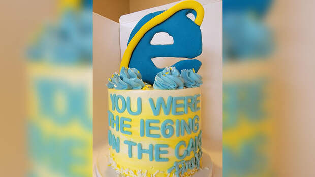 Сотрудники Microsoft опубликовали фотографию торта с логотипом Internet Explorer и фразой "You were the IE6ing on the cake" ("Ты был вишенкой на торте").