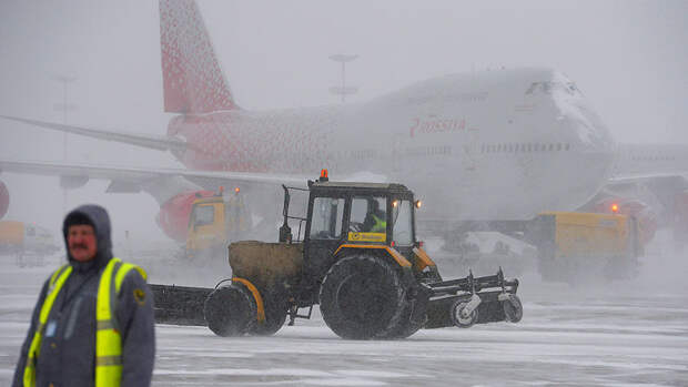 Работник аэропорта вышел ночью для очистки территории от снега. Во время работы — он не заметил борт и на полной скорости протаранил его своей кабиной.