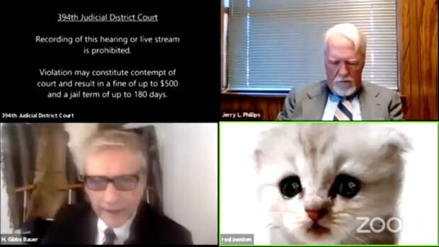 Видео с Zoom-заседания одного из судов Техаса стало вирусным в социальных сетях после того, как адвокат, принимавший в нем участие, случайно включил себе маску кота, сообщает New York Times.