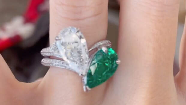 Кольцо состоит из "чистокровного" колумбийского изумруда, который вырезали в форме капли прямо из шахты.