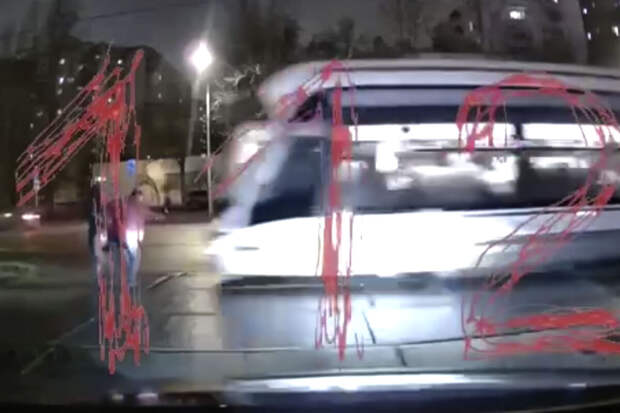 В Москве трамвай сбил двоих пешеходов. Кадры опубликовал Telegram-канал 112.