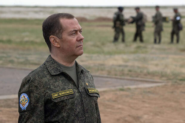 Заместитель председателя Совета безопасности РФ Дмитрий Медведев опубликовал в своем Telegram-канале видеозапись посещения им полигона Тоцкий в Оренбургской области, где готовят военных для участия в спецоперации.