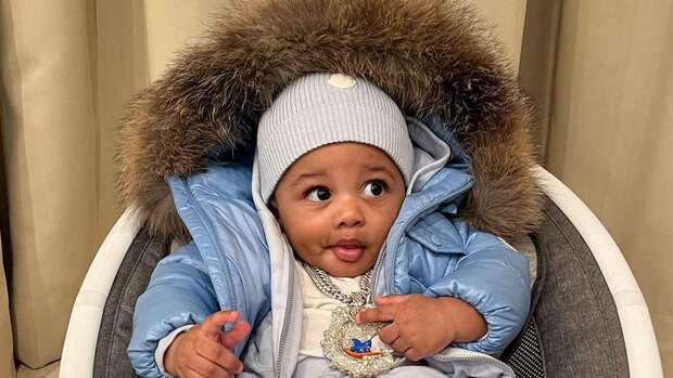 Карди Би и Оффсет выложили два снимка. На фото певицы малыш запечатлен с бриллиантовым ожерельем на шее и одетым в зимнюю одежду.