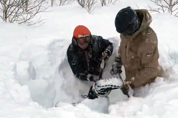 Другие лыжники бросились на помощь, откопали пострадавшую лопатами и вытащили из-под снежной толщи.