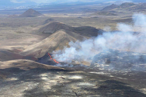 Вулканическую активность зафиксировали на полуострове Рейкьянес. Отмечается, что это уже пятое извержение в этом районе с 2021 года.