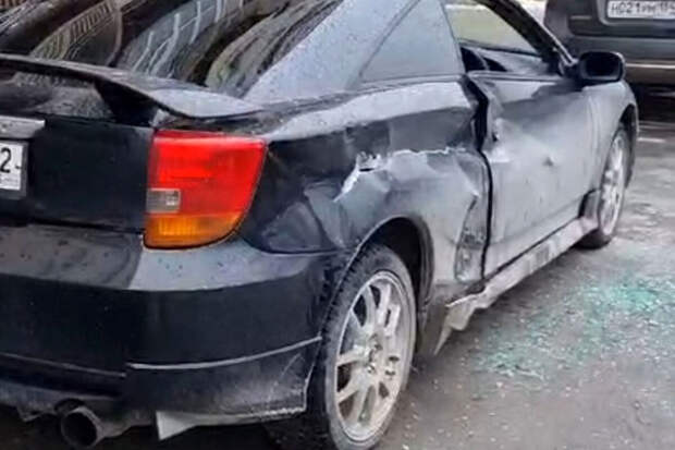 На фото с последствиями инцидента видно, что на правом борту Toyota Celica осталась глубокая вмятина, также у машины прострелено стекло.