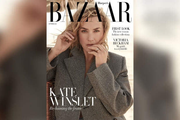 48-летняя Кейт Уинслет предстала на обложке в сером шерстяном жакете Prada на голое тело, который дополнила кольцом с бриллиантом. Голливудская актриса позировала, стоя в поле.