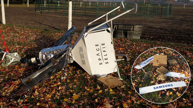 Проект Samsung по созданию космических селфи с помощью спутника завершился падением аппарата - он приземлился на одну из частных ферм в Мичигане. При этом воздушный шар отцепился от спутника, задев линии электропередач, из-за чего местные жители на пару часов остались без света.