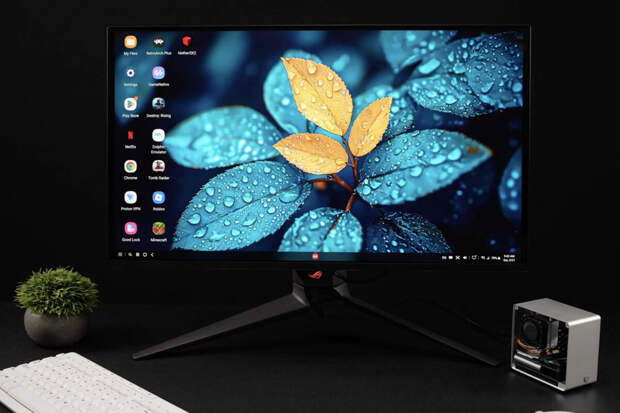 Устройство разместили в корпусе для Raspberry Pi и оснастили компактным башенным кулером для дополнительного охлаждения. Подключение к монитору осуществлялось через адаптер USB-C на HDMI. С помощью утилиты Good Lock энтузиасту удалось добиться вывода изображения в разрешении 1440p.