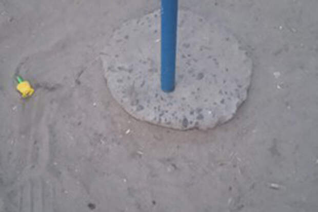 Инцидент произошел на детской площадке по улице Октябрьская, один из малышей сорвался с лестницы игрового комплекса, упал и ударился головой о песок, из которого торчал кусок бетона, этой смесью заливали поверхность площадки.