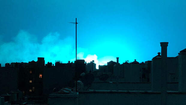 Небо Нью-Йорка озарил непонятный голубой свет