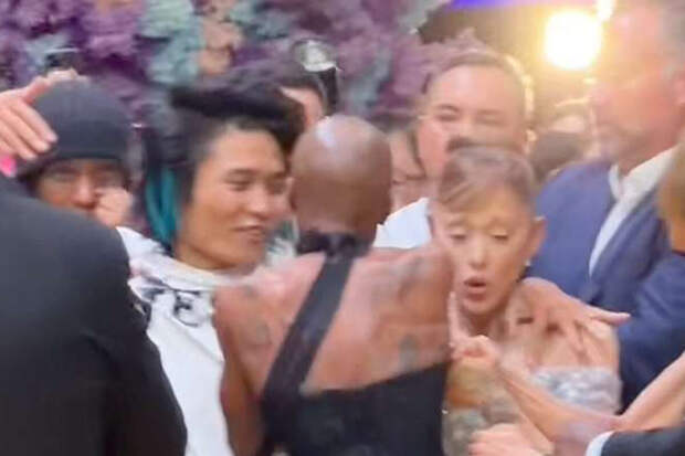 На премьере фильма "Злая: Сказка о ведьме Запада", которая состоялась 13 ноября 2025 года в Сингапуре, Гранде шла по желтой дорожке вместе с коллегами - Мишель Йео, Синтией Эриво и Джеффом Голдблюмом, как вдруг к ней подбежал мужчина в белой рубашке и шортах.