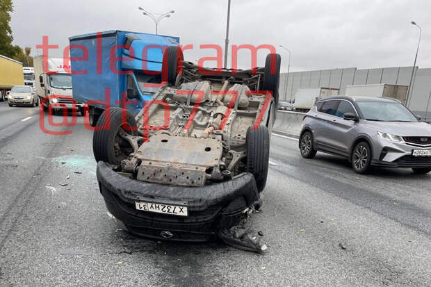В Москве на МКАД автомобиль перевернулся после столкновения с автовозом. Об этом сообщает Telegram-канал "ДТП и ЧП Москва и МО".