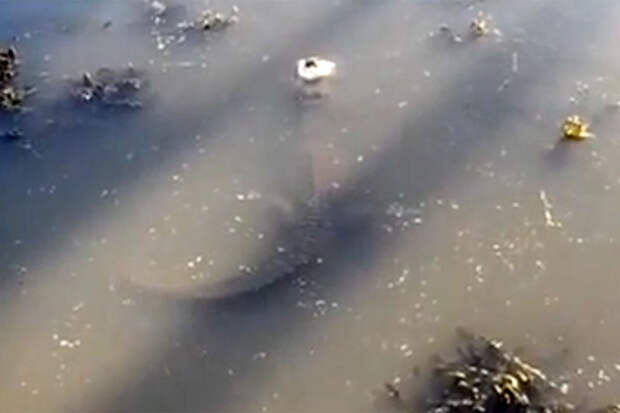 Видео снял владелец парка Гэри Саураж. На кадрах видно рептилию, которая почти полностью погружена в замерзший пруд.