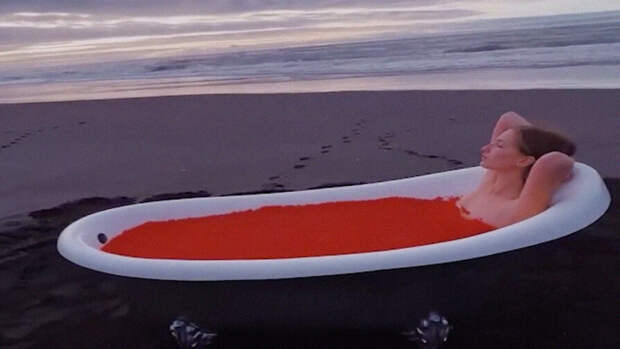 На видео блогерша лежит в ванной, наполненной красной икрой. Видео было снято во время путешествия на Камчатку.