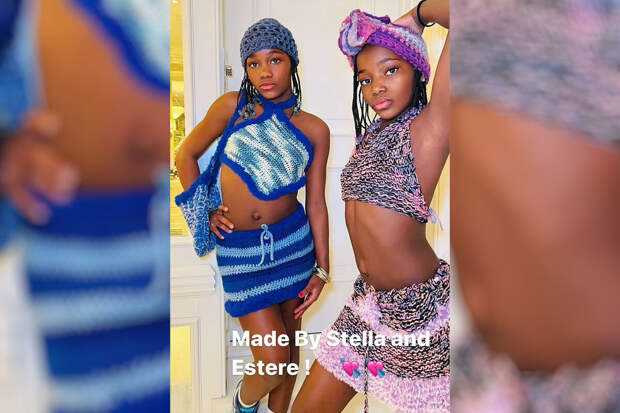 64-летняя Мадонна поделилась новыми фотографиями своих 10-летних дочерей-близнецов Эстер и Стеллы, одетых в наряды, дизайн которых девочки разработали сами. На снимках Эстер и Стелла позируют в ярких вязаных костюмах, состоящих из топов, коротких юбок и необычных головных уборов.