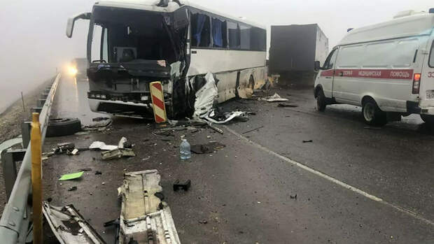 По информации источника, на федеральной трассе М-7 "Волга" автобус с детьми столкнулся с пятью машинами.