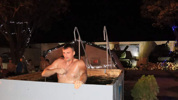 "Как отметили военнослужащие, главное отличие от крещенских купаний на Родине заключается в температуре воздуха. В этом году в крещенскую ночь она составила 14 градусов", - говорится в сообщении Минобороны.
