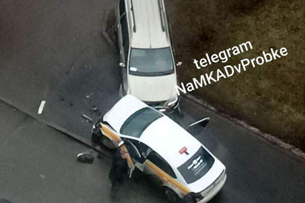 На кадрах видно, как автомобиль такси толкает легковую машину, которая врезается в столб. После столкновения оба автомобиля останавливаются. При этом видно, что во время движения у такси уже повреждены двери, капот и бампер.Уточняется, что водитель такси позже пришел в себя.