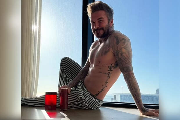 49-летний Дэвид Бекхэм позировал с голым торсом на фоне панорамных окон. Футболист был запечатлен в полосатых брюках на полу с напитком в руке. Сейчас спортсмен находится с семьей в Майами.