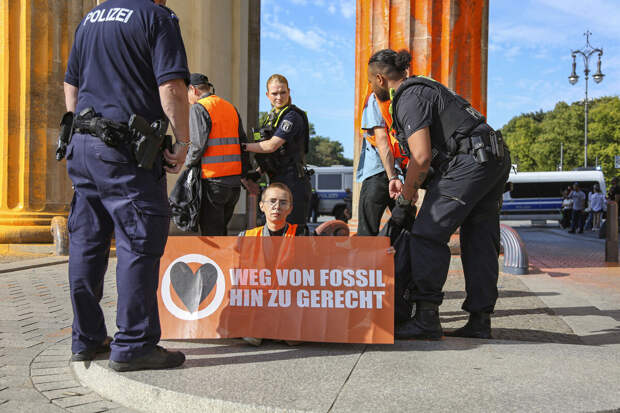 Экоактивисты "Последнего поколения" (Letzte Generation) облили краской Брандербургские ворота в Берлине. Об этом они сообщили в социальной сети Twitter (X).