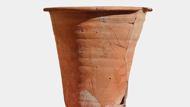 Круглый терракотовый горшок ярко-оранжевого цвета с двумя волнистыми прорезанными на его внешней стороне линиями, наклонными стенками высотой 32 см и горловиной диаметром 33 см, был обнаружен в руинах виллы или небольшого банного комплекса неподалеку от итальянского города Джерачи на Сицилии.